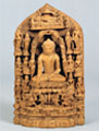 The art and history of Buddhism in Burma (Myanmar) is datable to about the 1st century C.E., although there is only fragmentary material available from then until the emergence of the royal city of Pagan in the 11th century. While a number of different types of Buddhism were practiced in Burma, Theravada Buddhism was established as the dominant religion in 1056 by King Anawrahta (reigned 1044-1077) of Pagan, who unified the country. However, the several streams of Buddhist traditions that reached Burma left indelible traces upon its material culture as evidenced by the two Burmese images of the Buddha Shakyamuni in the Asia Society's collection; one can be linked to Mahayana Buddhism as indicated by the depiction of bodhisattvas flanking Shakyamuni, while the other can be connected to Theravada Buddhism by the presence of two of Shakyamuni's most important disciples shown kneeling before him. Although Hindu images dating from the 6th to the 10th century have been found, Hinduism never established itself firmly in Burma. |